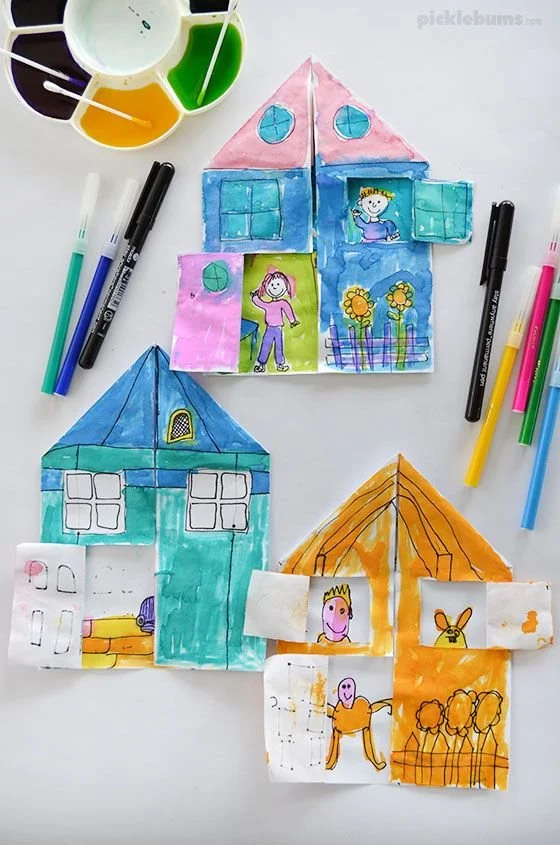 Materials: white paper, cardstock (various colors), markers, pencils, scissors, glue.