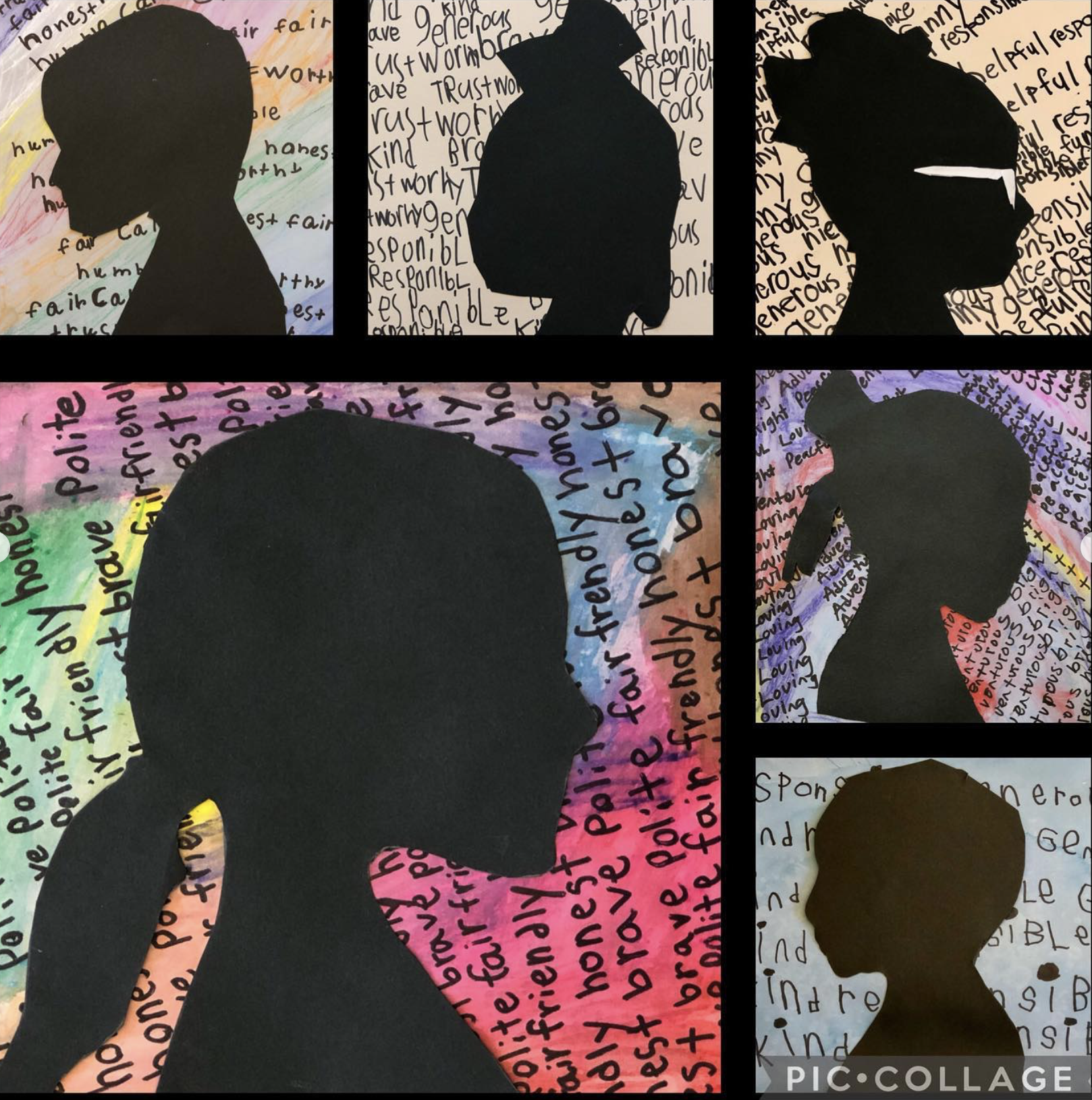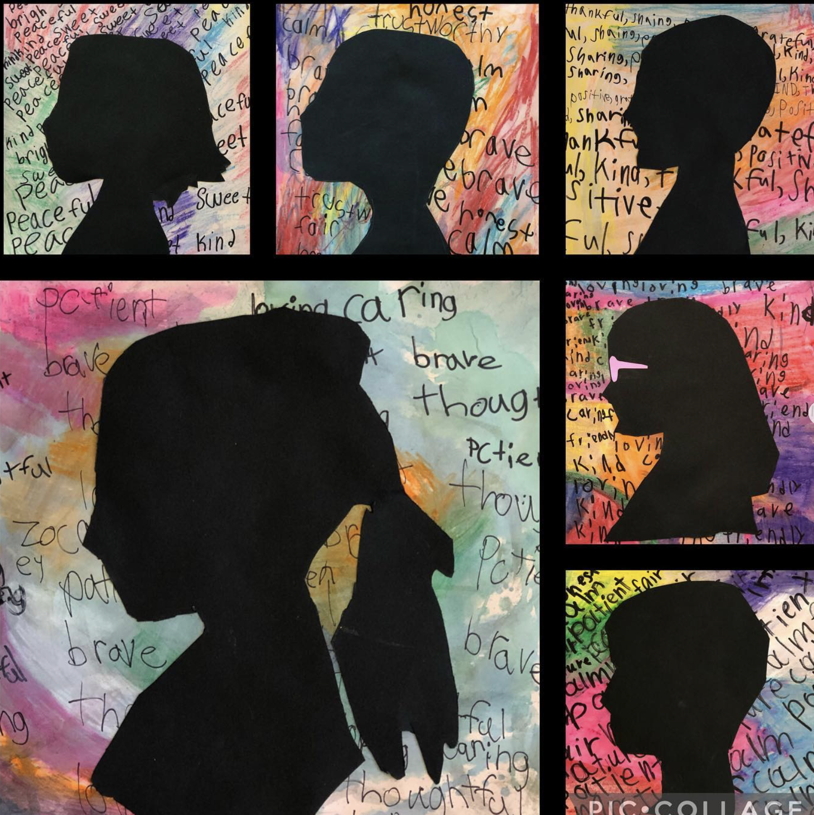Finally, students glue their colored profile silhouette onto the cardstock background with their positive words.