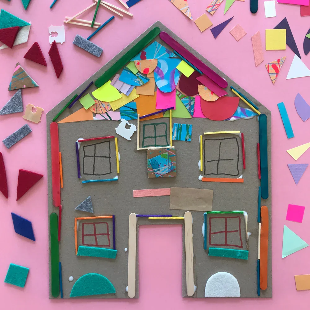 Experiment with arranging shapes before gluing them down. Once they are satisfied with the composition, students will attach the shapes using tape or glue on cardstock to create a collage that represents their idea of home.